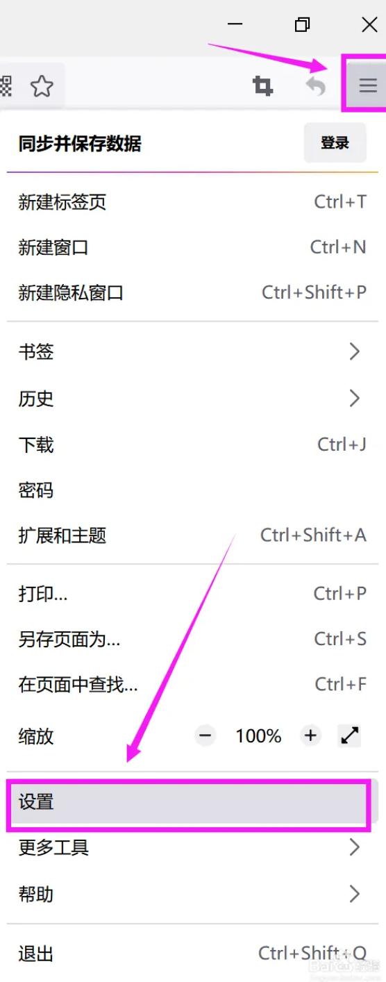 打开浏览器首页,点击页面右上角的“选项”图标,找到“设置”,点击打开